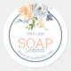 This fun stickers can be used for all your handmade soaps! This design features a white background, blue and peach flowers and coordinating custom typography. Add your logo and info to complete the look.