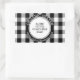 Rustic country, trendy black and white buffalo check product label stickers for branding- Classic country, black and white lumberjack plaid chequered pattern. Centre displays name of product displayed in white circle. Company name above in curved, modern lettering in matching white and bottom had custom business website address on the black circle border. Perfect for manly soaps for men, for branding your homey family business, country themes, rustic themes, and farmhouse product styles. Click Customise option to change text colours, size, and font styles. We have lots more soap product labels in our Zazzle.com/angela65* shop to mix and match for different soaps.