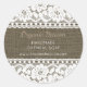 Elegant, but rustic country look, faux burlap and lace product label stickers for branding- Vintage, floral lace borders the top and bottom. Rustic, shabby brown burlap look background. Has company name in matching, taupe script. Underneath is name of product and custom business website address. Perfect for branding your family business, country themes, and rustic product styles. Click Customise option to change text colours, size, and font styles.