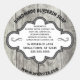 Rustic wood look, soap label stickers or labels for other country theme products- Rustic, grey barn wood boards look background. In the centre is a an emblem with charcoal edges and curlicues. Reads 'Handmade Glycerine Soap' in curved lettering at top, which may be changed to any product name. Website address at the bottom in curved letters. Ingredients list, address and phone number in the centre. All text is completely editable or can be deleted completely. Click Customise option to change text colours, size, and font styles.