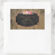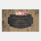 Elegant, but rustic country look, faux chalkboard product label stickers for branding- Vintage, rustic barnwood boards background. In the centre is a black, vintage chalkboard frame with faux rose gold glitter edges and vintage style pink rose wreath at the top. Has company name in matching, rose gold colour script. Underneath is name of product and custom business website address. Perfect for branding your family business, country themes, and rustic product styles. Click Customise option to change text colours, size, and font styles.