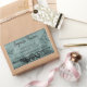 Trendy, but rustic country look, faux aged, turquoise wood product label stickers for branding- Distressed, stained, faded turquoise wood pattern background. Centre is imprinted with company name in black brush script, hand lettering look. Underneath is name of product and custom business website address. Below is vintage style, scrolls accent. Perfect for branding your family business, country themes, beach themes, and rustic product styles. Click Customise option to change text colours, size, and font styles.