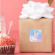 Handmade with love stickers with an image of a unicorn with big blue eyes, pink wings and a rainbow mane and tail. Kawaii cute.