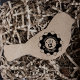 This "Handmade with love by" stamp features a badge with a hand and a custom name.