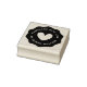 Rubber stamp featuring the text "Handmade with love" and your name or other custom text in a modern sans serif font surrounded by a wavy border. At the centre is a cute heart.