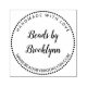 Handmade with love rubber stamp with your business name in a pretty calligraphy script framed by a dotted circle, and written in an arch "handmade with love" and your website.