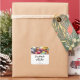 Handmade with love stickers with a photograph of a table filled with natures bounty. Set with cornucopia, colourful harvest vegetables and fruits.