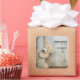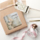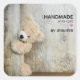Handmade with love stickers with a darling photograph of a cute stuffed bear, standing by a rustic wooden wall / backdrop.