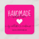 This simple and cute business card is perfect for the home crafter, Etsy shop owner, or art fair creative. It features handwritten script font in black and white that says, "Handmade with love by (store name)," on top of a minimal neon pink background. It's modern, elegant, sweet, and unique; the perfect design for your customers.
