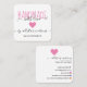 This simple and cute business card is perfect for the home crafter, Etsy shop owner, or art fair creative. It features handwritten script font in black and pink that says, "Handmade with love by (store name)," on top of a minimal white background. It's modern, elegant, sweet, and unique; the perfect design for your customers.