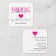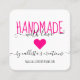 This simple and cute business card is perfect for the home crafter, Etsy shop owner, or art fair creative. It features handwritten script font in black and neon pink that says, "Handmade with love by (store name)," on top of a minimal white background. It's modern, elegant, sweet, and unique; the perfect design for your customers.