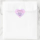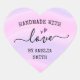 Heart shaped stickers with the text "handmade with love" and your custom name on a pink and purple swirls background. The word "love" is written in an elegant calligraphy script font and the rest of the text in a vintage typewriter style font. Use as envelope seals, stickers for gifts and favours, product packaging etc. Follow us on Facebook: @businessstationery for more products, news, sales and more.