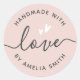 Handmade with love hearts name light blush pink classic round sticker