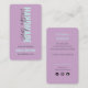 Handmade with love lilac vertical business card with modern oversized typography. Handmade with love is lettered with headline print and overlapping handwritten script. The template is set up for you to personalise with your name and/or company name, tagline(s), contact details and social media. Feel free to customise as required and delete any social media icons that you don't need. This business card has a colour palette of lilac, mint green and white.