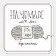 Cute illustrated knitting yarn with pink heart, handmade with love, and your name or company name.