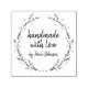 A stamp for your handmade products, art or crafts. Whimsical lavender hearts wreath with handwritten font.