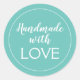 These sweet stickers feature the words Handmade with LOVE in white on a background of solid light teal. Change the background colour by clicking on the customise button.