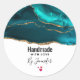 Handmade with Love Modern Teal Agate & Gold Ribbon Classic Round Sticker