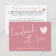 Modern Handmade with Love Blush Pink Heart Thank You Jewellery Care Note Card