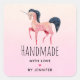 Handmade with Love Pink Unicorn with Black Mane Square Sticker