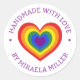 Handmade With Love Rainbow Heart Custom Name Classic Round Sticker