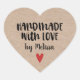 A personalised rustic "handmade with love" heart shaped sticker on a kraft coloured background. Make it yours by adding your own name. A pretty finishing touch for all of your handmade gifts. Designed for you by Blackberry Boulevard.