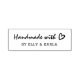 Handmade Business Stamp. Handmade with love self-inking rubber stamp featuring the text "Handmade with" in a modern script typeface, a calligraphy heart element and your business name in a typewriter font. Personalise it with your details and add a special touch to your handmade products or gifts. Explore more easy-to-customise unique rubber stamps for business and private use made with love by © y.BEE PAPERIE #zazzlemade #handmadewithlovestamp #handdrawnheartstamp