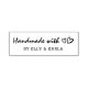 Handmade with Love Self-Inking Rubber Stamp featuring the text "Handmade with" in a modern script typeface, two hand drawn hearts and the business name in a typewriter font. Personalise it with your details and add a special and unique touch to your handmade products or gifts with this heart stamp. Explore more easy-to-customise unique rubber stamps for business and private use made with love by © y.BEE PAPERIE #zazzlemade #handmadewithlovestamp #typewriterfontstamp