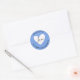 Round stickers with a white heart, the text "handmade with love" and your custom name and website or other custom text on a light blue background. The word "love" is written in an elegant calligraphy script. Use as envelope seals, stickers for gifts and favours, or any other product packaging.