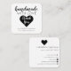 This professional and elegant business card is perfect for any Etsy crafter, home jeweller, art fair designer, or small business jewellery supplier. It features a simple and minimalist black font and handwritten typography with a cute heart, the phrase, "handmade with love," and a place for your business information on a white background. It's elegant, modern, unique, cute, and trendy; the perfect design to impress your customers and market your business.
