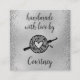These modern yet classic 2.5 x 2.5 silver foil and glitter square cards with your name in a beautiful script font, a black ball of yarn with a heart centre, and crochet hook on the front and your contact information and washing instructions with a crochet hook on the back would be perfect for adding into gifts, packages at craft fairs or when shipping out online orders to customers. Super easy to make your own.