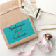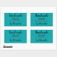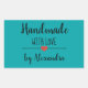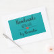 Modern "handmade with love" sticker with a black font on a teal background embellished by a cute red heart. Customise text.