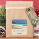 Handmade with love stickers with a beautiful photograph featuring a turquoise blue sea and a sandy beach with waves of foamy surf.