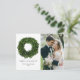 Merry and Married | Send your holiday wishes to friends and family with this customisable holiday postcard. This photo Christmas postcard features handpainted boxwood wreath. Personalise by adding your details. This wedding Christmas postcard is available in other colours and cardstock. Matching items are available.