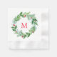 Handpainted Watercolor Holiday Wreath with Initial Napkin
