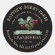 Add in your business name, address, net wt. Elegant black label with gold text and red and green cranberry illustration.