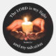 Hands Holding Lighted Candle with Bible message Classic Round Sticker