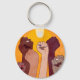 Hands with fist raised up over yellow sun key ring