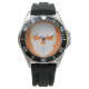 Has heft and feel of expensive stainless steel quartz wrist watches. Solid construction and good looks. Although it had a really top quality rubber strap, I substituted a stainless steel "Shark" style mesh strap, which I think is the most comfortable strap available. Perfect. True colors of original image. Clear, crisp image precisely aligned and spaced.