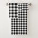 Add a striking accent to your bathroom with a stylish custom towel set including a wash cloth, hand towel, and bath towel featuring a handsome black and white gingham pattern. Black, white, and grey squares form a bold checked plaid. Buy the full set or any piece of it.