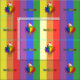 An illustrated rooster in all his glory with his tail feathers ready for a De Colores rainbow shout out.
