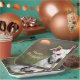 These paper plates feature a dignified white Pitbull against an atmospheric background.
