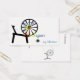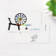 An adorable spider hangs from a spinning wheel on this unique fibre arts business card design. Designed for the fibre spinning artist, this business card doubles as a yarn ID tag for attaching to finished products. Easy to customise and a perfect professional touch to all your projects. Original artwork and design by Night Owl's Menagerie, 2011.
