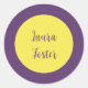 Handwriting Elegant Name Indigo & Yellow Colour Classic Round Sticker