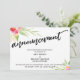 This suite's distinction is due to the modern, handwritten script font used for accent phrases and colourful watercolor flowers. In this piece, the hand-lettered script font was used to create a simple graphic depicting the word "announcement". The word "love" appears in the same casual font, large and bold on the back; this can be removed if you prefer. Use the template fields to add your personal details and make this unique, modern design your own. The white background can be changed to any colour you prefer. Please reach out with any special requests or for customising assistance. // 100 //