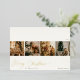 This minimalist and elegant Christmas and Holiday photo card design features four photos on the front (and one on the back) to showcase your special photos to send to family and friends. A gold foil 'Merry Christmas' shines on an off-white background for special Christmas shine and sparkle, in a handwriting style that will make your cards look chic and personalised.