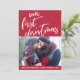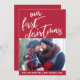 Handwriting on Red Our First Christmas, Photo Holiday Card