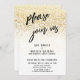 A casual, modern handwriting font was used to create a graphic depicting the words "please join us". The background was covered in an image simulating faux-metallic gold confetti. Use the template fields to add your personal details and make this unique, modern design your own. // 100 //
