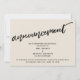 This suite's distinction is due to the modern, handwritten script used for accent phrases. In this piece, the hand-lettered font was used to create a graphic depicting the word "announcement". Use the template fields to add your personal details and make this unique, modern design your own. The background can be changed to any colour you prefer. Please reach out with any special requests or for customising assistance. // 100 //