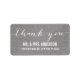 Handwriting Script Wedding Thank You Grey Linen Return Address Label. Design by Elke Clarke© for MonogramGallery printed by Zazzle. Send out your wedding thank you cards to your friends and family using this beautifully, simple label with the words "thank you" written in a white hand writing typography script text overlay with printed linen photo effect background. You can personalise with your married names and new mailing address. Other colours available.